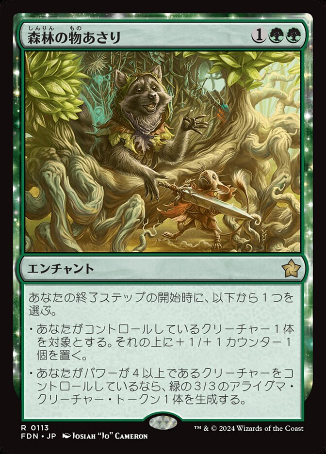 | Rules | At the beginning of your end step, choose one — • Put a +1/+1 counter on target creature you control. • Create a 3/3 green Raccoon creature token if you control a creature with power 4 or greater. |
