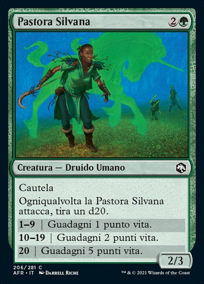 | Rules | Vigilance Whenever Sylvan Shepherd attacks, roll a d20. 1—9 | You gain 1 life. 10—19 | You gain 2 life. 20 | You gain 5 life. |