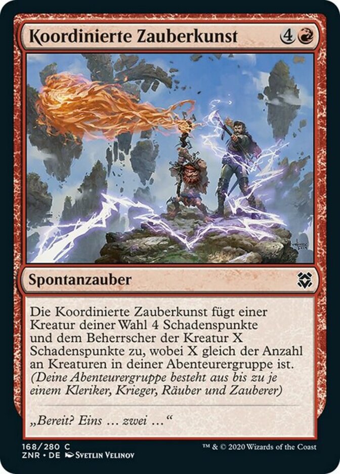| Rules | Synchronized Spellcraft deals 4 damage to target creature and X damage to that creature's controller, where X is the number of creatures in your party. (Your party consists of up to one each of Cleric, Rogue, Warrior, and Wizard.) |