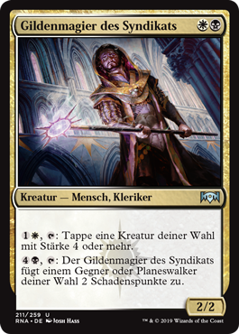 | Rules | , : Tap target creature with power 4 or greater. , : Syndicate Guildmage deals 2 damage to target opponent or planeswalker. |