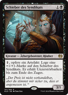 | Rules | , Sacrifice an artifact: Put a +1/+1 counter on Syndicate Trafficker. It gains indestructible until end of turn. |