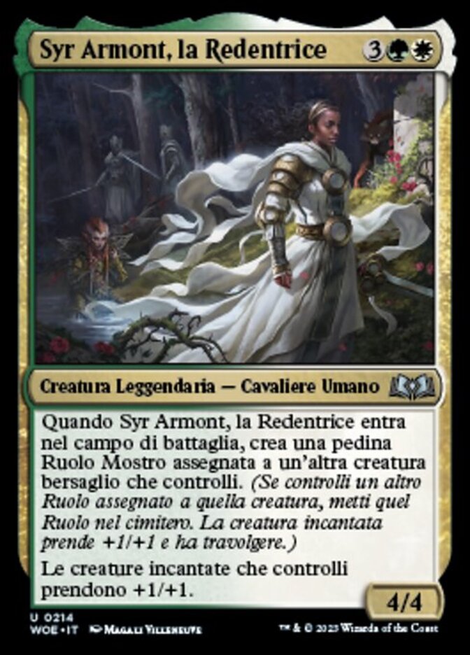 | Rules | When Syr Armont, the Redeemer enters the battlefield, create a Monster Role token attached to another target creature you control. (If you control another Role on it, put that one into the graveyard. Enchanted creature gets +1/+1 and has trample.) Enchanted creatures you control get +1/+1. |