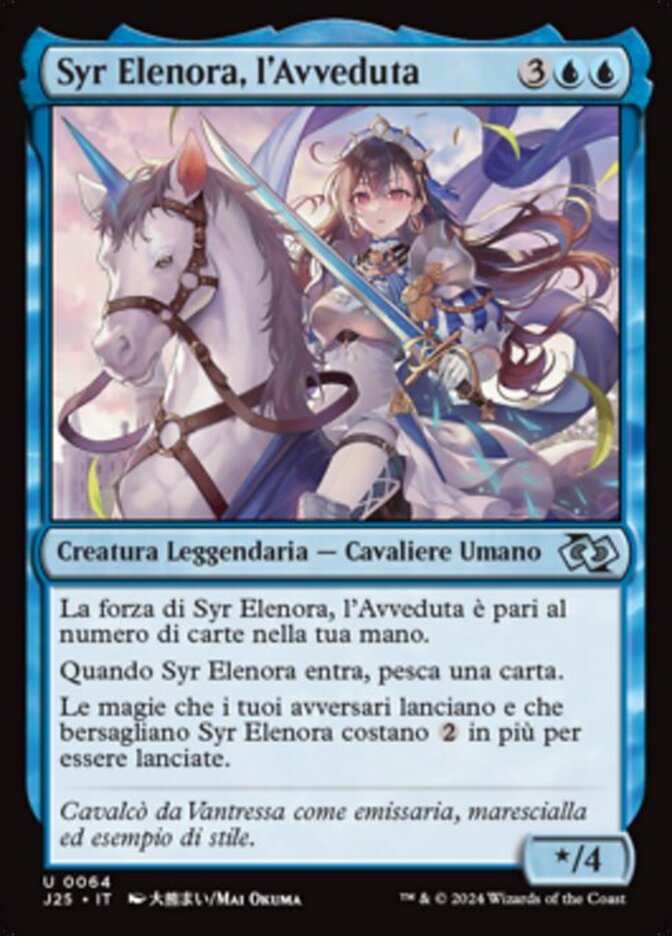 | Rules | Syr Elenora, the Discerning's power is equal to the number of cards in your hand. When Syr Elenora enters the battlefield, draw a card. Spells your opponents cast that target Syr Elenora cost more to cast. |