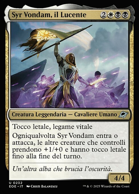 | Rules | Deathtouch, lifelink Whenever Syr Vondam enters or attacks, other creatures you control get +1/+0 and gain deathtouch until end of turn. |