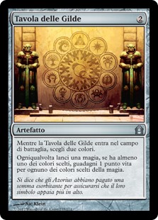 | Rules | As Tablet of the Guilds enters the battlefield, choose two colors. Whenever you cast a spell, if it's at least one of the chosen colors, you gain 1 life for each of the chosen colors it is. |