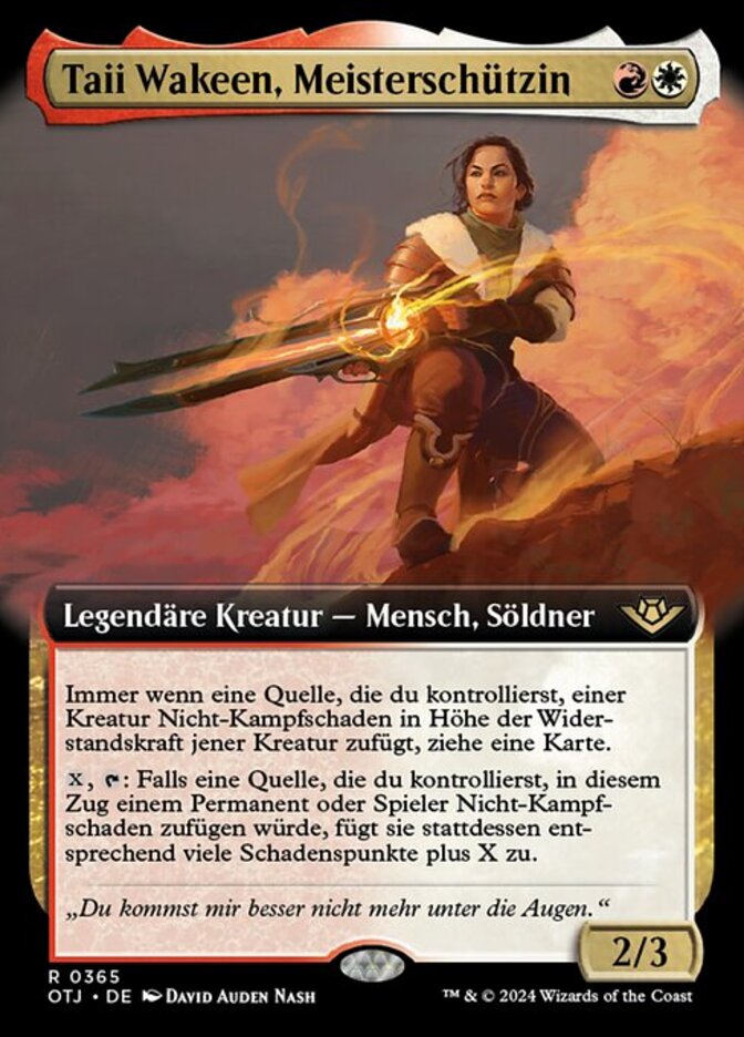 | Rules | Whenever a source you control deals noncombat damage to a creature equal to that creature's toughness, draw a card. , : If a source you control would deal noncombat damage to a permanent or player this turn, it deals that much damage plus X instead. |