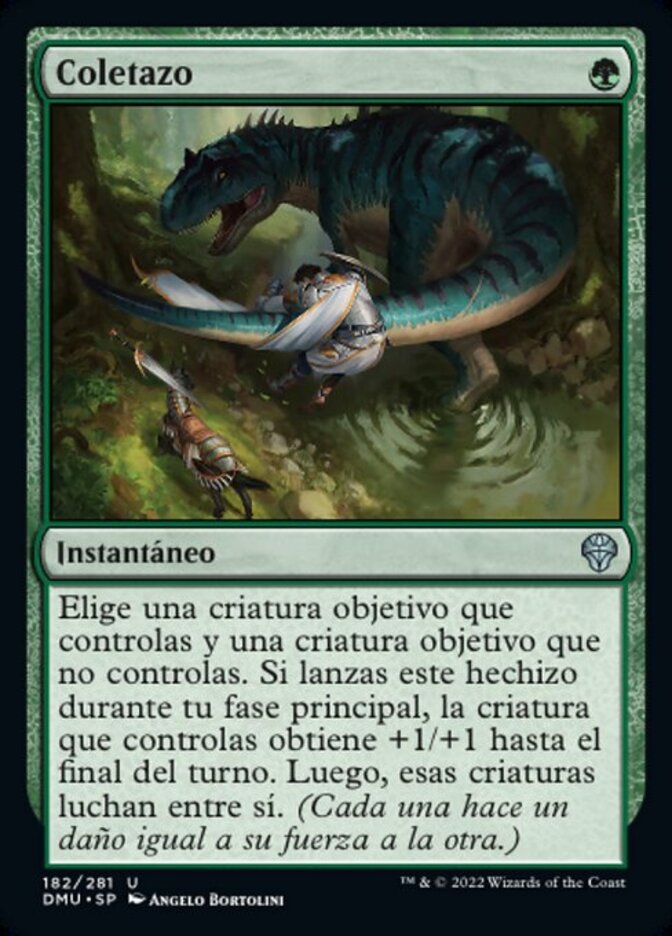 | Rules | Choose target creature you control and target creature you don't control. If you cast this spell during your main phase, the creature you control gets +1/+1 until end of turn. Then those creatures fight each other. (Each deals damage equal to its power to the other.) |