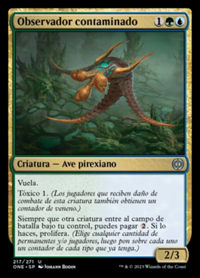 | Rules | Flying Toxic 1 (Players dealt combat damage by this creature also get a poison counter.) Whenever another creature enters the battlefield under your control, you may pay . If you do, proliferate. (Choose any number of permanents and/or players, then give each another counter of each kind already there.) |