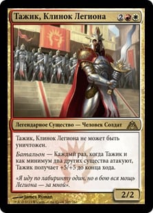 | Rules | Indestructible Battalion — Whenever Tajic, Blade of the Legion and at least two other creatures attack, Tajic gets +5/+5 until end of turn. |