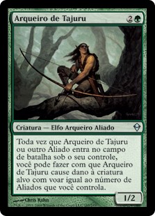 | Rules | Whenever Tajuru Archer or another Ally enters the battlefield under your control, you may have Tajuru Archer deal damage to target creature with flying equal to the number of Allies you control. |
