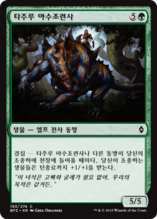| Rules | Rally — Whenever Tajuru Beastmaster or another Ally enters the battlefield under your control, creatures you control get +1/+1 until end of turn. |