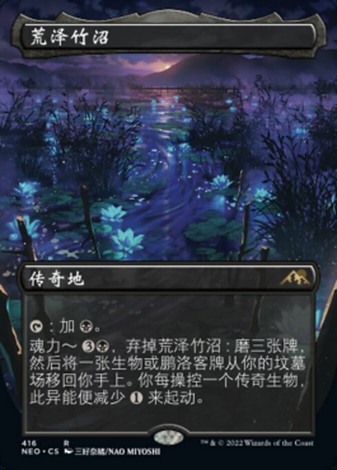 | Rules | : Add . Channel — , Discard Takenuma, Abandoned Mire: Mill three cards, then return a creature or planeswalker card from your graveyard to your hand. This ability costs less to activate for each legendary creature you control. |