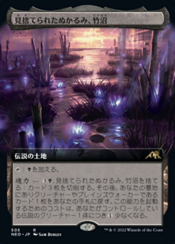 | Rules | : Add . Channel — , Discard Takenuma, Abandoned Mire: Mill three cards, then return a creature or planeswalker card from your graveyard to your hand. This ability costs less to activate for each legendary creature you control. |