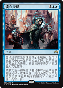 | Rules | Target opponent reveals the top seven cards of their library. You may cast an instant or sorcery spell from among them without paying its mana cost. Then that player puts the rest into their graveyard. Spell mastery — If there are two or more instant and/or sorcery cards in your graveyard, you may cast up to two instant and/or sorcery spells from among the revealed cards instead of one. |