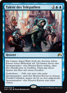 | Rules | Target opponent reveals the top seven cards of their library. You may cast an instant or sorcery spell from among them without paying its mana cost. Then that player puts the rest into their graveyard. Spell mastery — If there are two or more instant and/or sorcery cards in your graveyard, you may cast up to two instant and/or sorcery spells from among the revealed cards instead of one. |