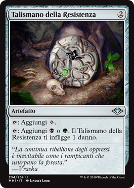 : Add or . Talisman of Resilience deals 1 damage to you.