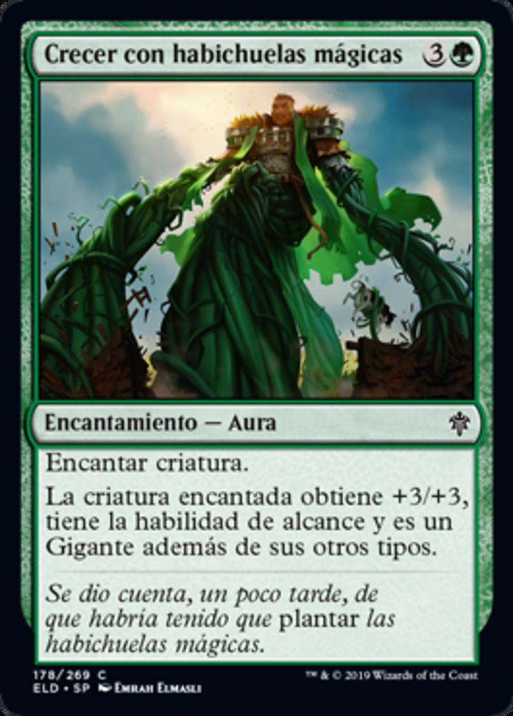| Rules | Enchant creature Enchanted creature gets +3/+3, has reach, and is a Giant in addition to its other types. |