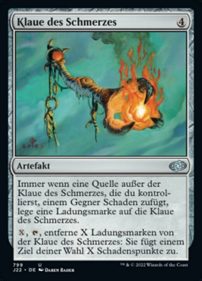 | Rules | Whenever a source you control other than Talon of Pain deals damage to an opponent, put a charge counter on Talon of Pain. , , Remove X charge counters from Talon of Pain: It deals X damage to any target. |