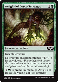 | Rules | Enchant creature Enchanted creature gets +1/+1 and has trample. (It can deal excess combat damage to the player or planeswalker it's attacking.) : Return Talons of Wildwood from your graveyard to your hand. |