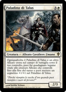 | Rules | Whenever Talus Paladin or another Ally enters the battlefield under your control, you may have Allies you control gain lifelink until end of turn, and you may put a +1/+1 counter on Talus Paladin. |