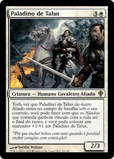 | Rules | Whenever Talus Paladin or another Ally enters the battlefield under your control, you may have Allies you control gain lifelink until end of turn, and you may put a +1/+1 counter on Talus Paladin. |
