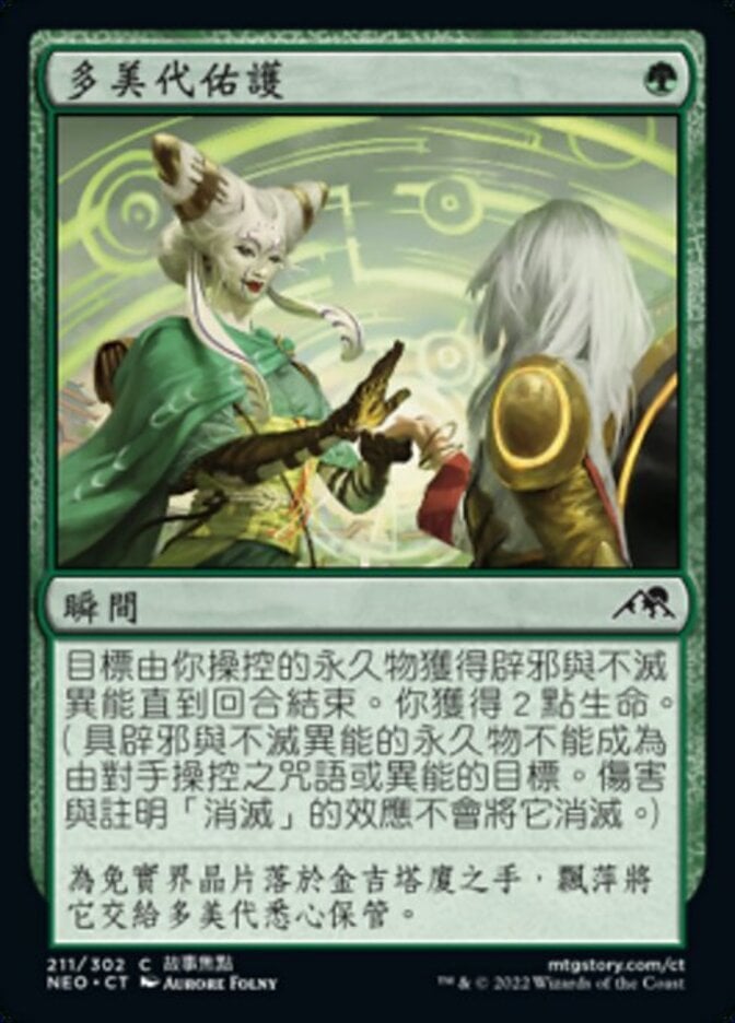 | Rules | Target permanent you control gains hexproof and indestructible until end of turn. You gain 2 life. (A permanent with hexproof and indestructible can't be the target of spells or abilities your opponents control. Damage and effects that say "destroy" don't destroy it.) |