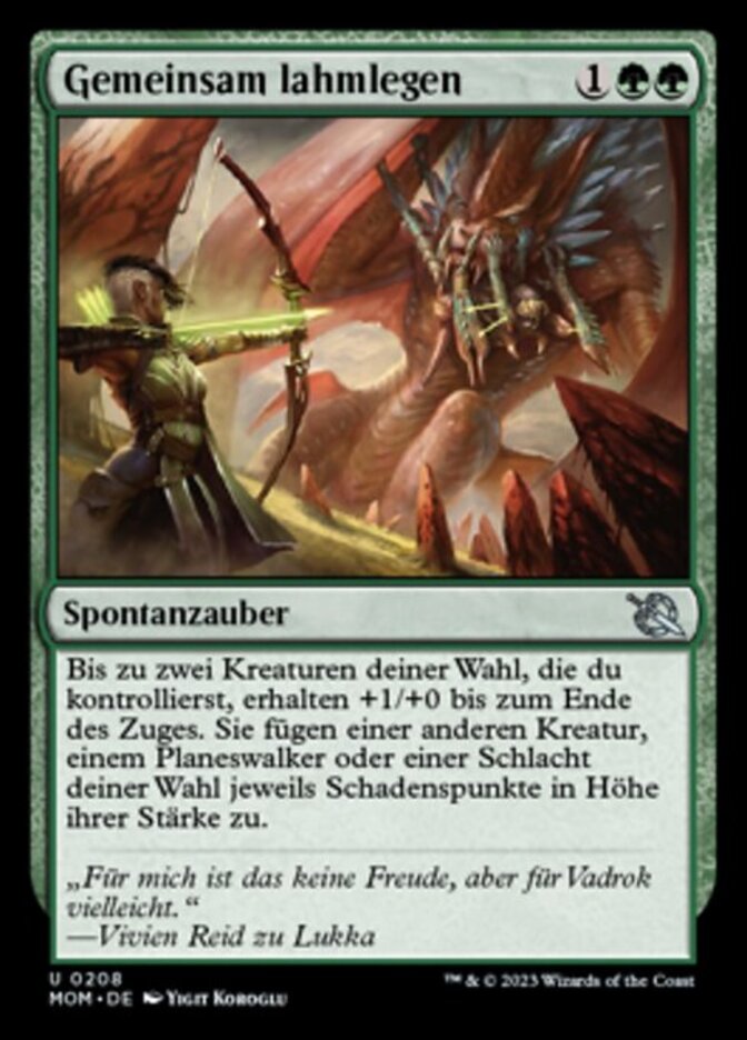 | Rules | Up to two target creatures you control each get +1/+0 until end of turn. They each deal damage equal to their power to another target creature, planeswalker, or battle. |