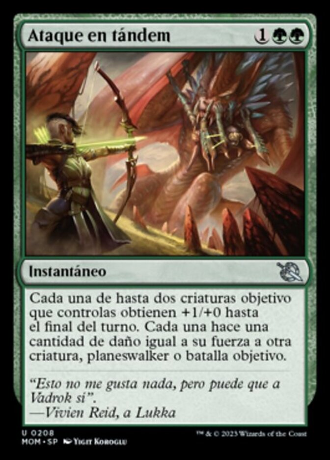 | Rules | Up to two target creatures you control each get +1/+0 until end of turn. They each deal damage equal to their power to another target creature, planeswalker, or battle. |
