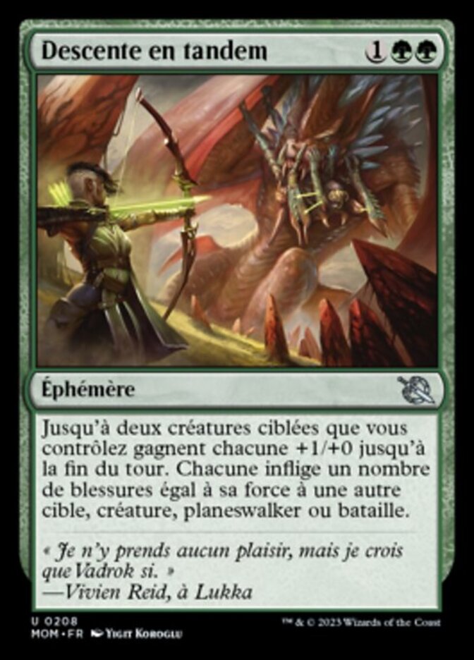 | Rules | Up to two target creatures you control each get +1/+0 until end of turn. They each deal damage equal to their power to another target creature, planeswalker, or battle. |