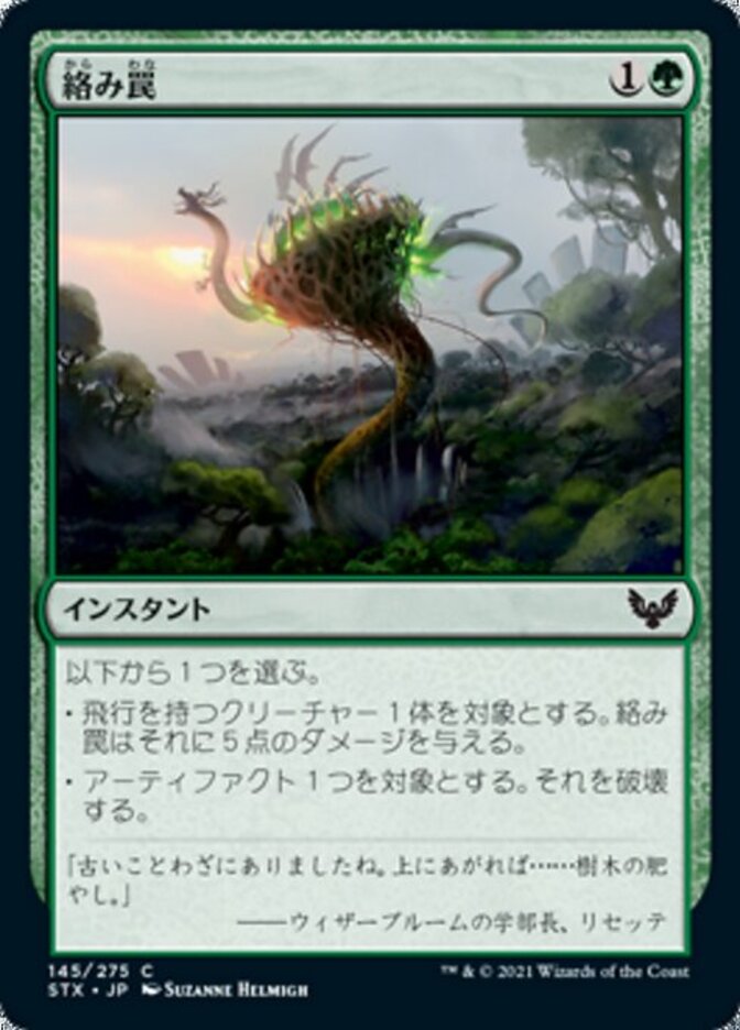 | Rules | Choose one — • Tangletrap deals 5 damage to target creature with flying. • Destroy target artifact. |