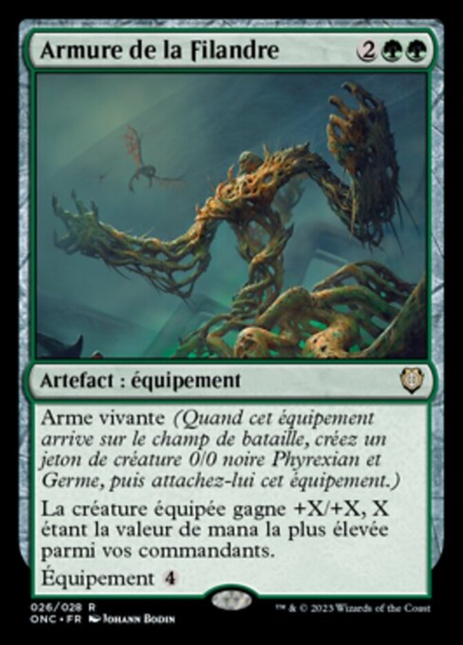 | Rules | Living weapon (When this Equipment enters the battlefield, create a 0/0 black Phyrexian Germ creature token, then attach this to it.) Equipped creature gets +X/+X, where X is the greatest mana value among your commanders. Equip |