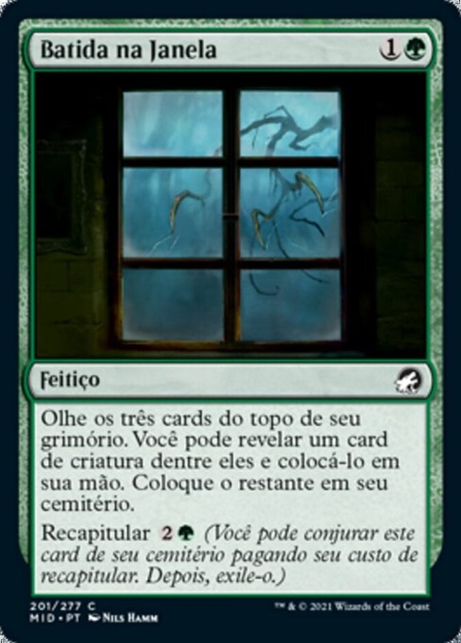 | Rules | Look at the top three cards of your library. You may reveal a creature card from among them and put it into your hand. Put the rest into your graveyard. Flashback (You may cast this card from your graveyard for its flashback cost. Then exile it.) |