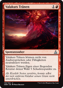 | Rules | This spell can't be countered. Tears of Valakut deals 5 damage to target creature with flying. |