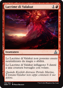 | Rules | This spell can't be countered. Tears of Valakut deals 5 damage to target creature with flying. |