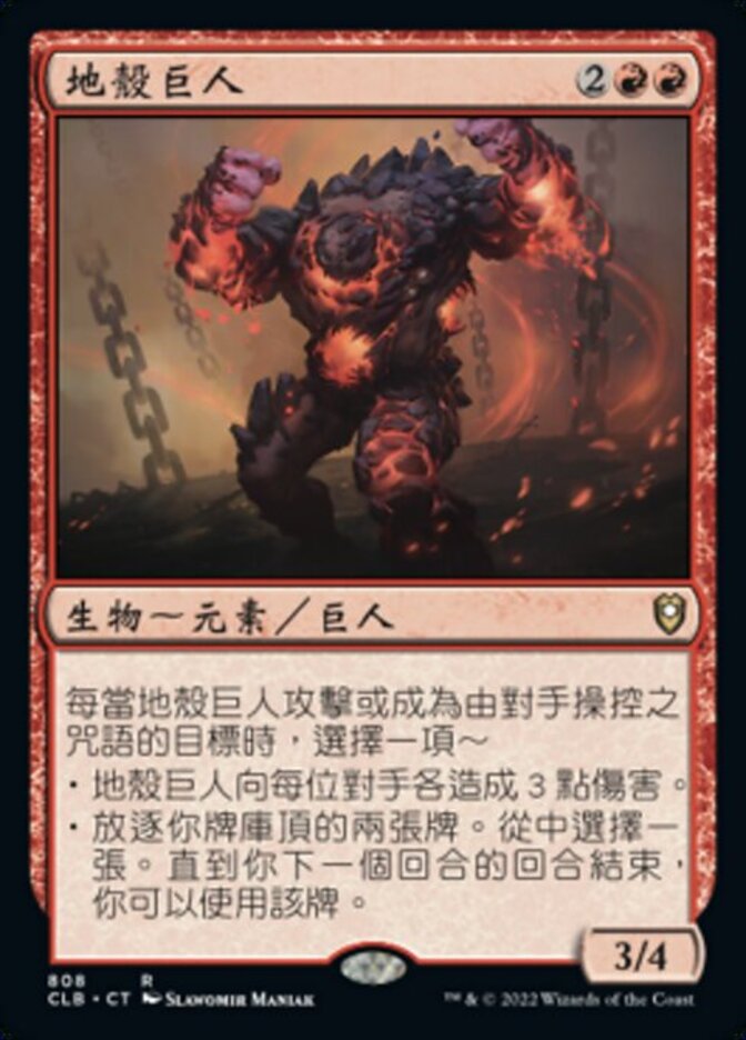 | Rules | Whenever Tectonic Giant attacks or becomes the target of a spell an opponent controls, choose one — • Tectonic Giant deals 3 damage to each opponent. • Exile the top two cards of your library. Choose one of them. Until the end of your next turn, you may play that card. |