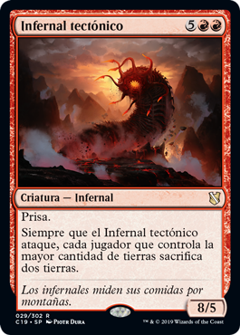 | Rules | Haste Whenever Tectonic Hellion attacks, each player who controls the most lands sacrifices two lands. |