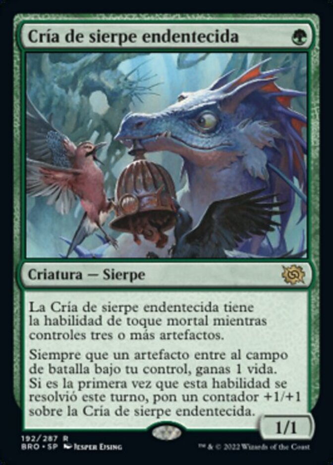 | Rules | Teething Wurmlet has deathtouch as long as you control three or more artifacts. Whenever an artifact enters the battlefield under your control, you gain 1 life. If this is the first time this ability has resolved this turn, put a +1/+1 counter on Teething Wurmlet. |