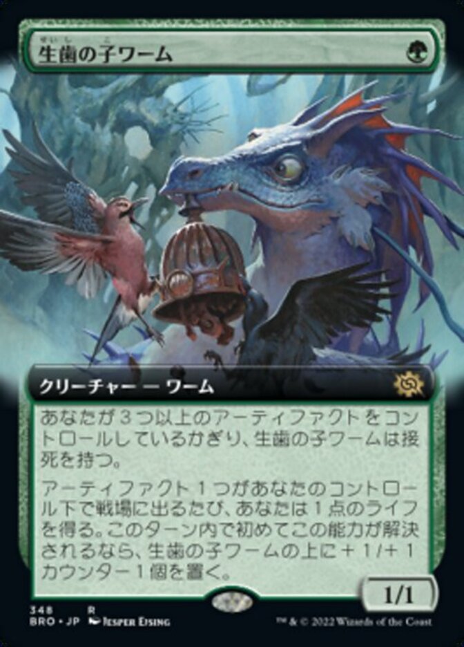 | Rules | Teething Wurmlet has deathtouch as long as you control three or more artifacts. Whenever an artifact enters the battlefield under your control, you gain 1 life. If this is the first time this ability has resolved this turn, put a +1/+1 counter on Teething Wurmlet. |