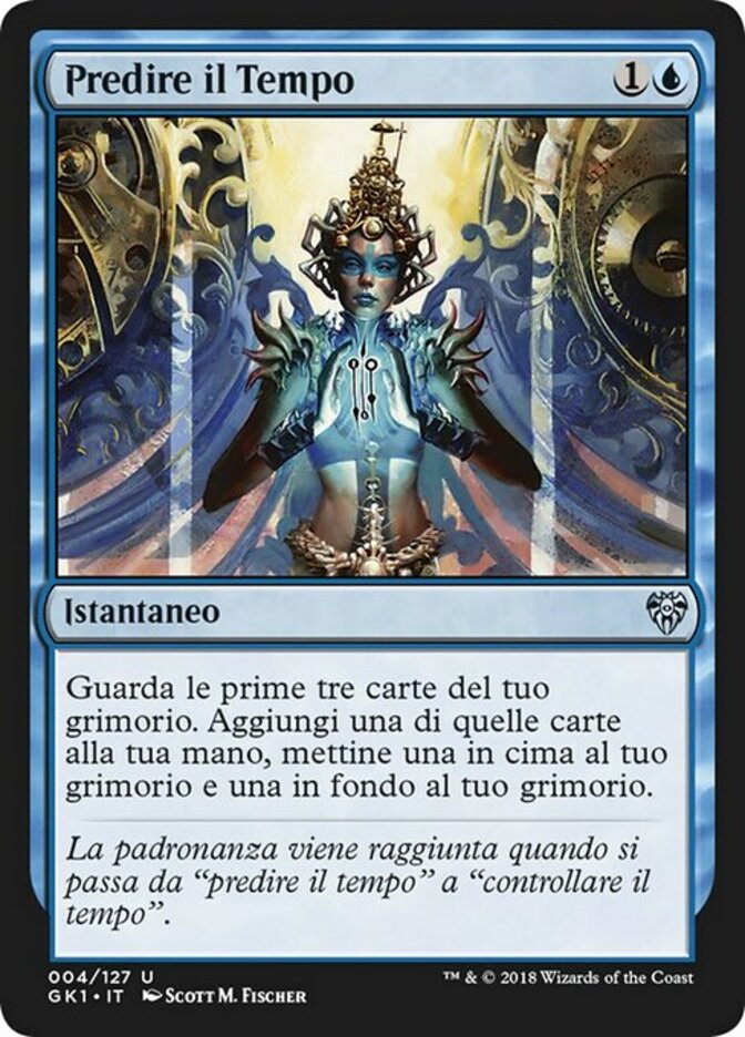 | Rules | Look at the top three cards of your library. Put one of those cards into your hand, one on top of your library, and one on the bottom of your library. |