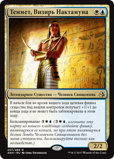 | Rules | At the beginning of combat on your turn, target creature token you control gets +1/+1 until end of turn and can't be blocked this turn. Embalm (, Exile this card from your graveyard: Create a token that's a copy of it, except it's a white Zombie Human Cleric with no mana cost. Embalm only as a sorcery.) |