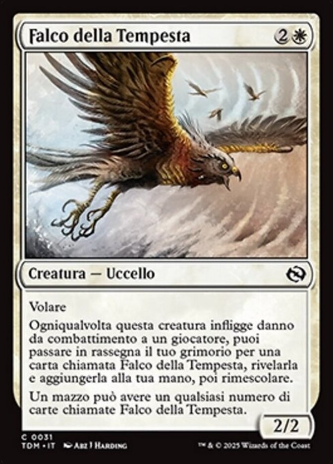 | Rules | Flying Whenever this creature deals combat damage to a player, you may search your library for a card named Tempest Hawk, reveal it, put it into your hand, then shuffle. A deck can have any number of cards named Tempest Hawk. |