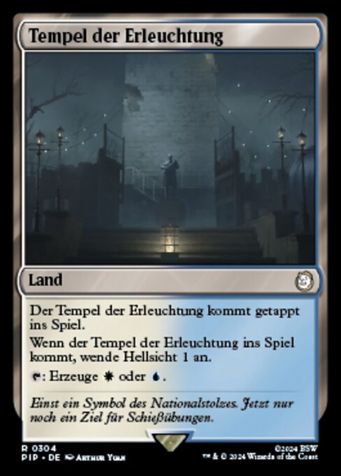 | Rules | Temple of Enlightenment enters the battlefield tapped. When Temple of Enlightenment enters the battlefield, scry 1. : Add or . |