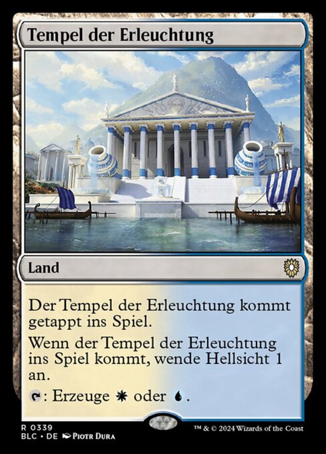 | Rules | Temple of Enlightenment enters the battlefield tapped. When Temple of Enlightenment enters the battlefield, scry 1. : Add or . |