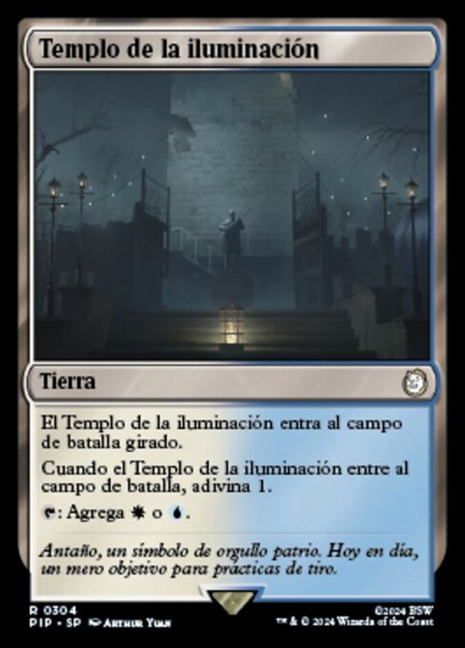 | Rules | Temple of Enlightenment enters the battlefield tapped. When Temple of Enlightenment enters the battlefield, scry 1. : Add or . |