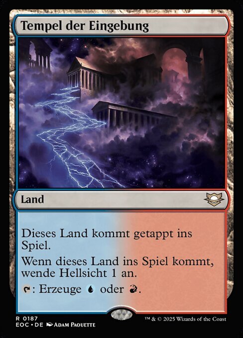 | Rules | Temple of Epiphany enters the battlefield tapped. When Temple of Epiphany enters the battlefield, scry 1. : Add or . |