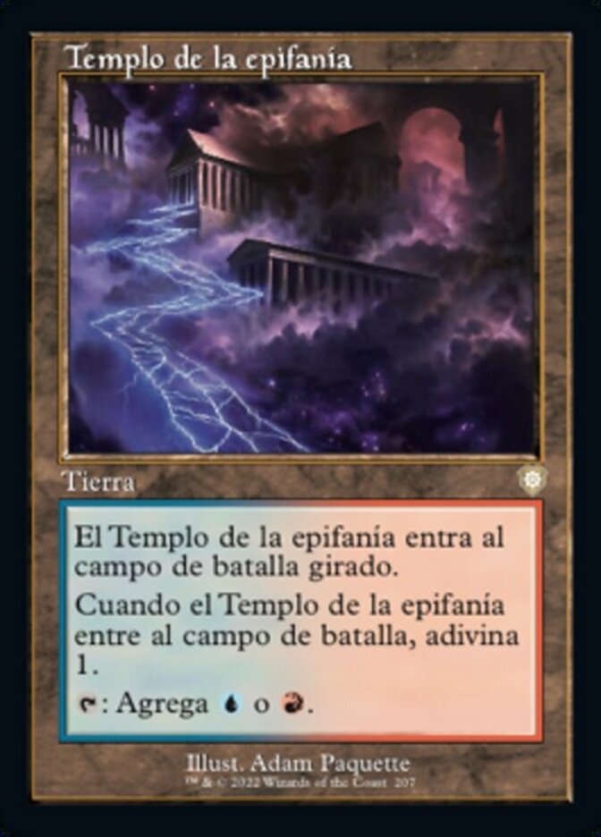 | Rules | Temple of Epiphany enters the battlefield tapped. When Temple of Epiphany enters the battlefield, scry 1. : Add or . |