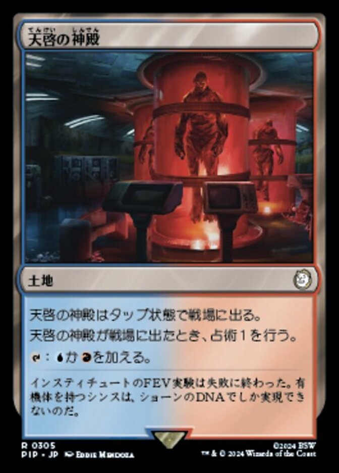 | Rules | Temple of Epiphany enters the battlefield tapped. When Temple of Epiphany enters the battlefield, scry 1. : Add or . |