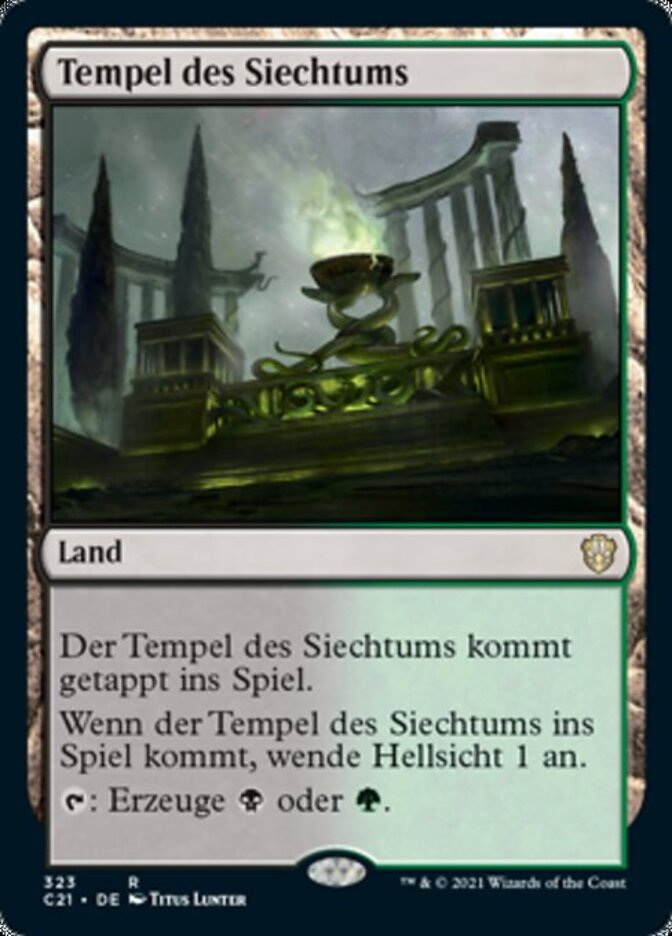 | Rules | Temple of Malady enters the battlefield tapped. When Temple of Malady enters the battlefield, scry 1. : Add or . |