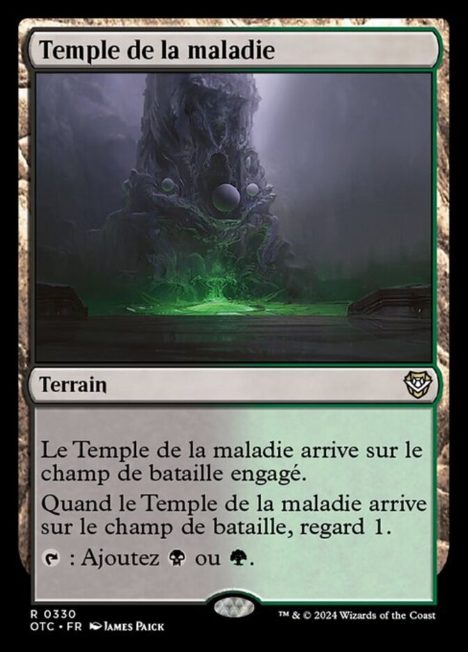 | Rules | Temple of Malady enters the battlefield tapped. When Temple of Malady enters the battlefield, scry 1. : Add or . |