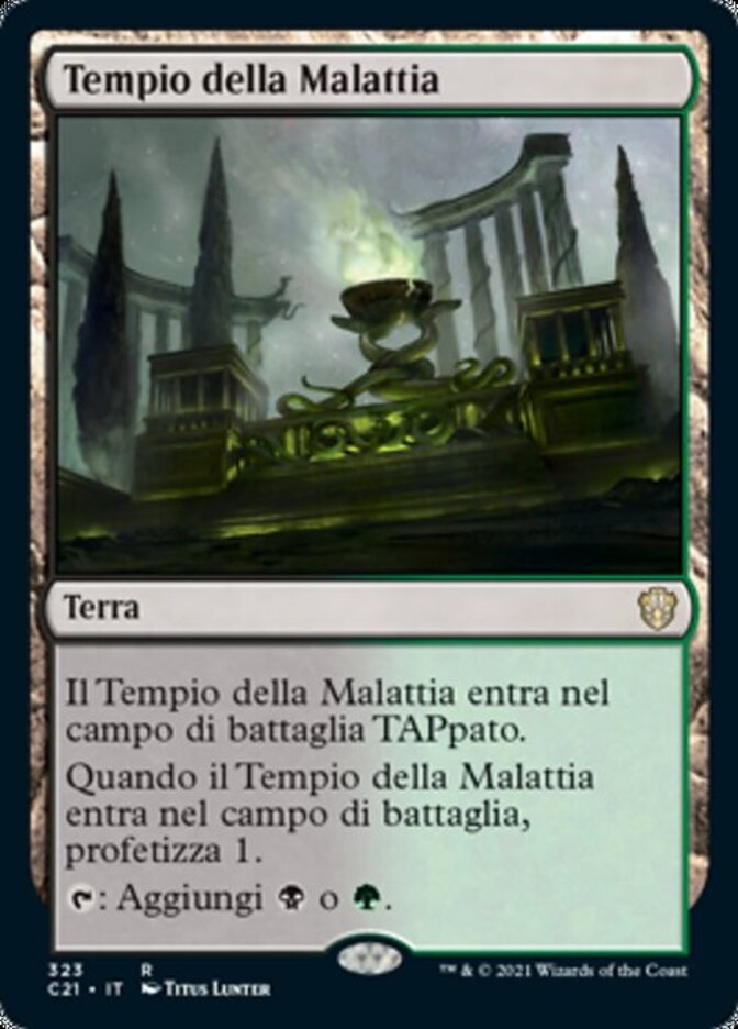 | Rules | Temple of Malady enters the battlefield tapped. When Temple of Malady enters the battlefield, scry 1. : Add or . |